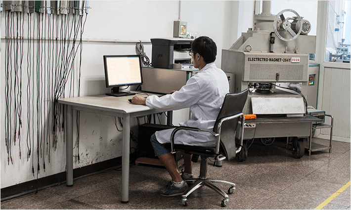 This test uses a gaussmeter to measure the flux density of a magnet at a determined distance. Typically, the measurement is made either at the magnet's surface, or at the distance at which the flux will be used in the magnetic circuit. Flux density testing verifies that the magnet material used for our custom magnets will perform as predicted when the measurement matches the calculated values.